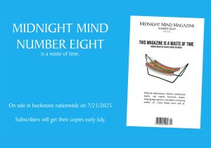 We have a distributor for Midnight Mind, and they like to have an official “on sale” date for each issue. Well, today is that day! July 21 marks Midnight Mind Number Eight’s retail debut. Subscribers got their copies last week. You can still subscribe or buy it direct (though we…